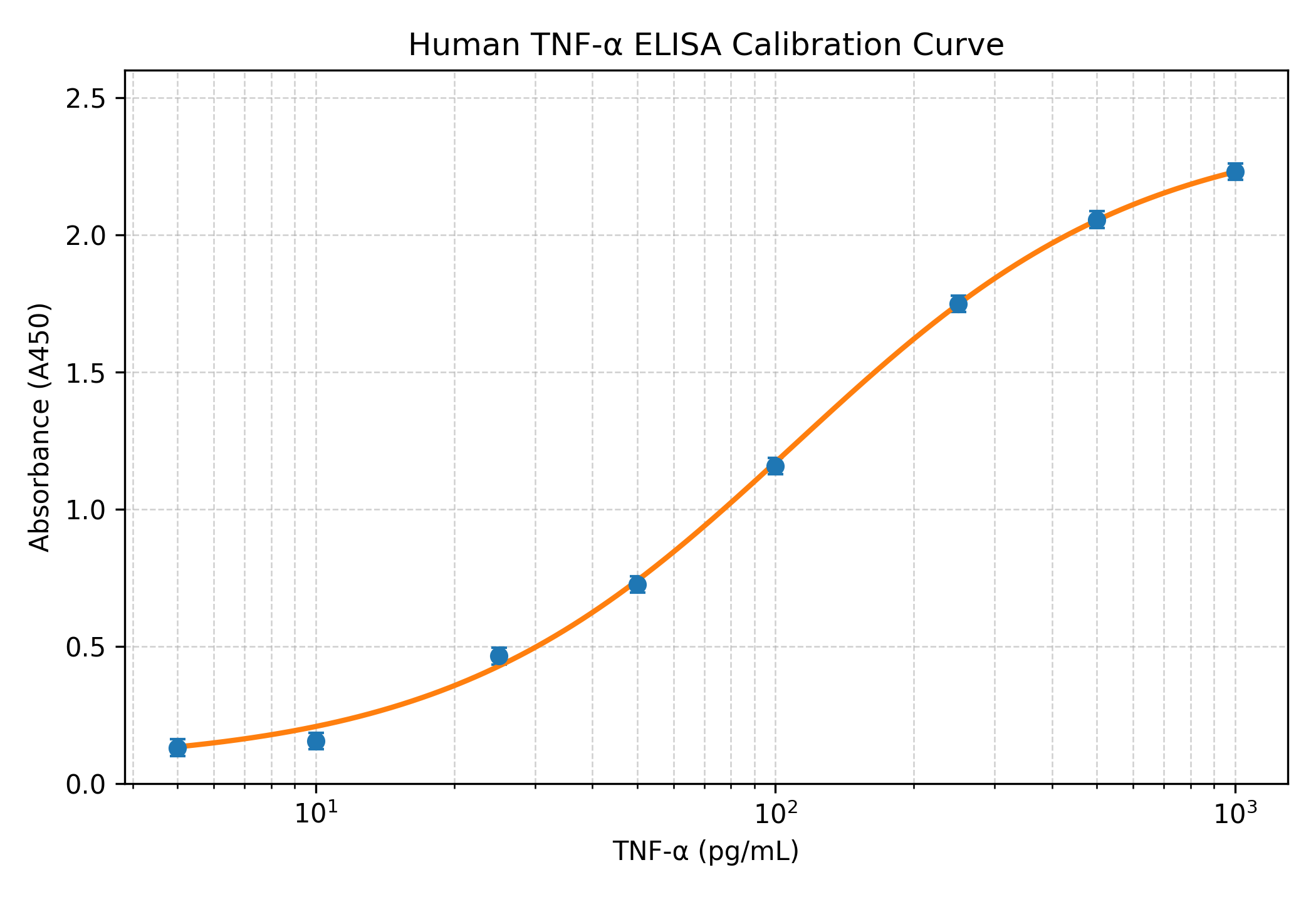 • A calibration curve is generated using recombinant human TNF-α standards with known concentrations.