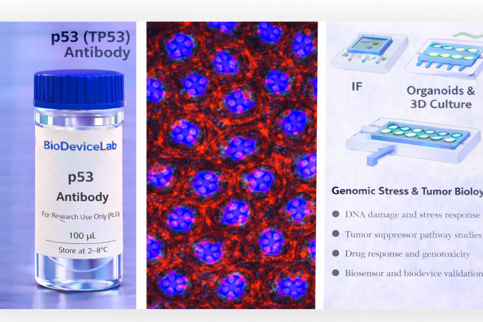 Immunostaining of p53 typically reveals nuclear localization, reflecting its role as a transcriptional regulator. In stressed or transformed cells, increased nuclear accumulation of p53 can be readily detected and quantified. The BioDeviceLab p53 Antibody is supplied as a purified monoclonal antibody to support flexible assay design and integration into both conventional and advanced in vitro platforms.